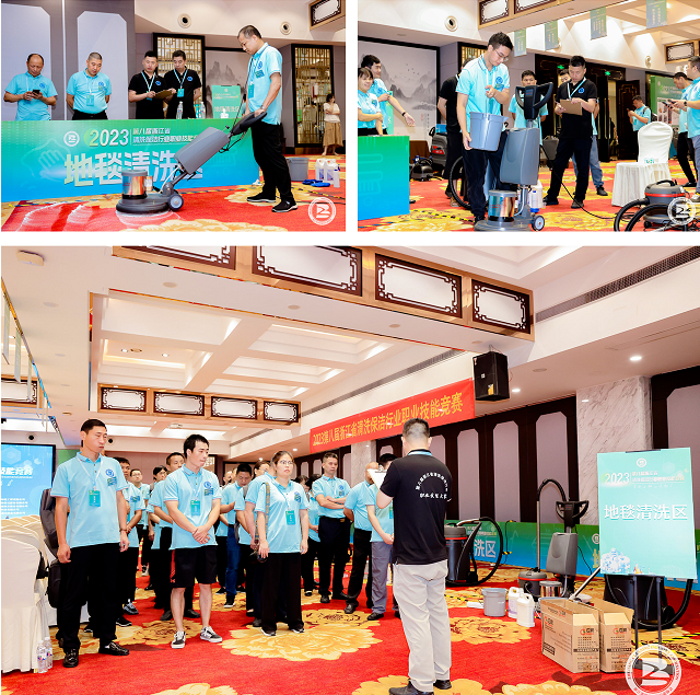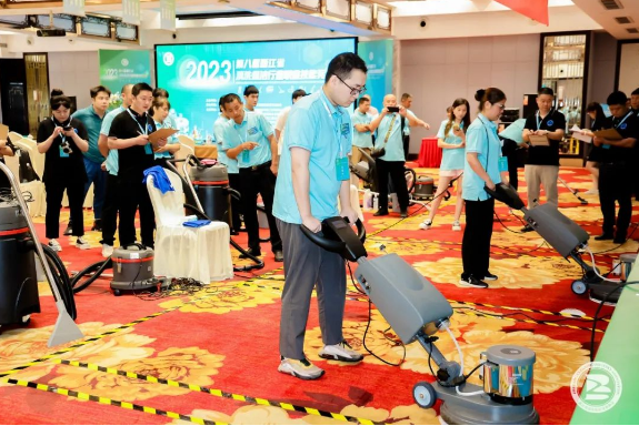 活動中,來自浙江25家清洗保潔行業(yè)單位近90名一線員工分別參加了地毯護(hù)理工種技能比賽和環(huán)境衛(wèi)生員工種的垃圾分類、衛(wèi)生間清潔、駕駛式洗地機(jī)使用三項技能比賽。