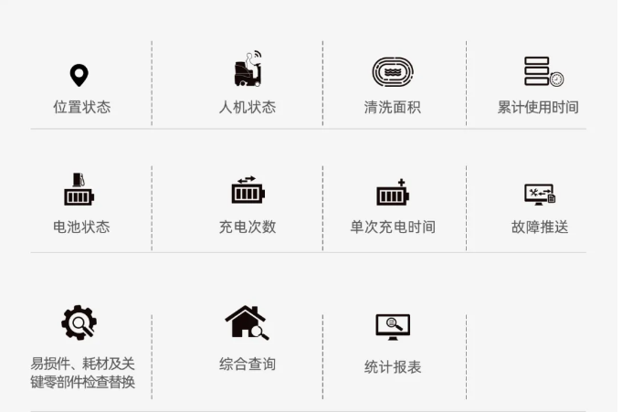 S系列掃地車,搭載高美智慧清潔管理系統(tǒng),可以提供科學管理方案,特別針對面積大、項目多的單位,高美智慧清潔系統(tǒng)可以同時管理幾十臺以上的機器,可以洞察機器運行狀態(tài),實現(xiàn)人、設備、場景的智能關聯(lián),集成了科學的清潔方案和資產管理方案,大幅度降低了清潔成本和提升了運營效率。