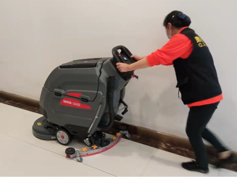 手推式洗地機(jī):體積小、靈活輕便,適用于清潔狹窄處和角落區(qū)域的地面,快速吸干,避免滑倒,配合清潔劑和消毒劑,快速除異味和消毒。