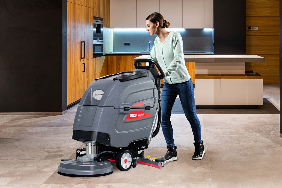 2、清潔效率比較高,一臺(tái)手推式自走洗地機(jī)可以代替6位以上的清潔人員,既節(jié)省了企業(yè)保潔成本,又省時(shí)省力。
