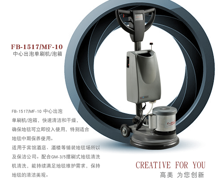快速干燥的清潔性能,確保地毯及時投入使用,特別適合地毯中期保養(yǎng)使用。適用于賓館酒店、酒樓等鋪裝地毯場所以及保潔公司。配合GM-3/5擺刷式地毯清洗機清洗,能持續(xù)滿足地毯維護需求,提供美觀清潔的地毯。